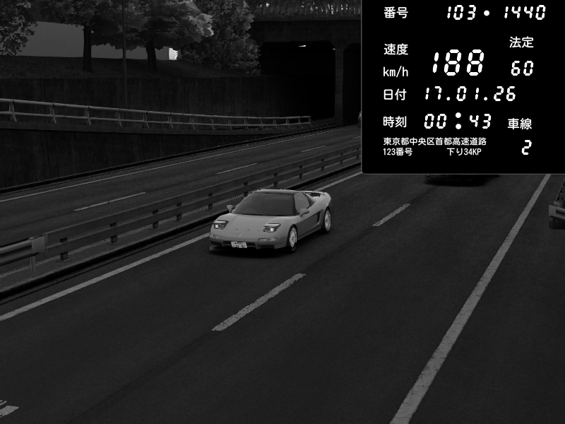 | 2026/01/17 00:43 | C1内回り 銀座 | 188 / 60 km/h | Honda NSX [NA1] PVLSX | CAPTURE |