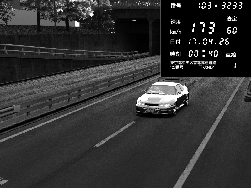 | 2026/04/17 00:40 | C1内回り 銀座 | 173 / 60 km/h | Nissan Skyline GTR R33 (S3 - Wangan) | CAPTURE |