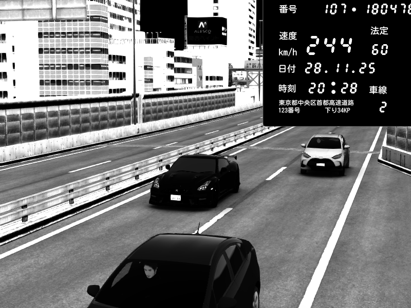 | 2025/11/28 20:31 | C1外回り 京橋 | 264 / 60 km/h | Nissan GT-R NISMO 2017 | CAPTURE |
