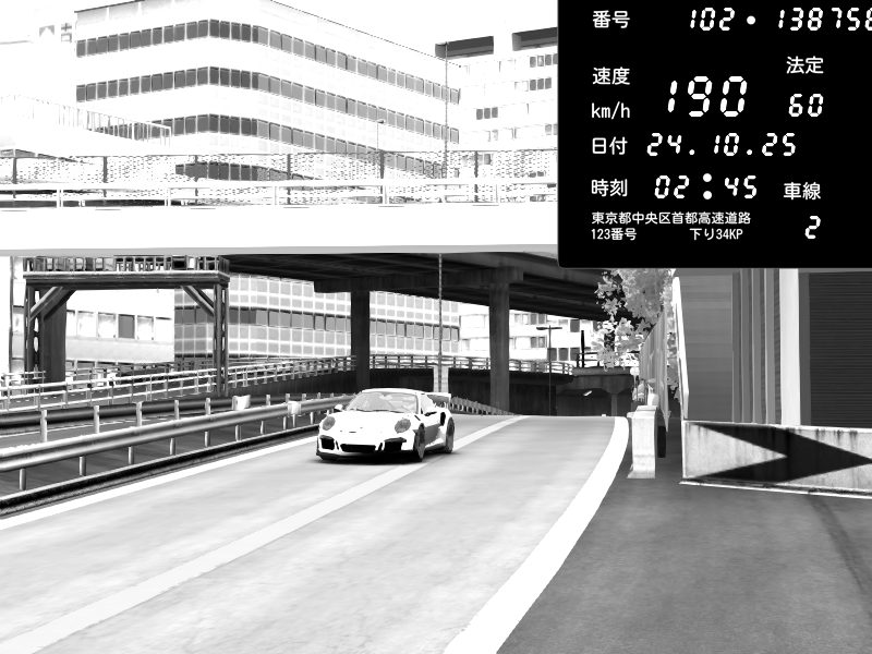 2025/10/24 02:45 | C1外回り 京橋 | 257 / 60 km/h | Porsche 911 GT3 RS | CAPTURE |
