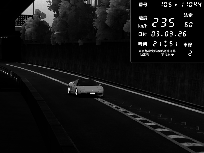| 2026/03/03 21:51 | C1外回り 京橋 | 235 / 60 km/h | Honda NSX [NA1] PVLSX | CAPTURE |