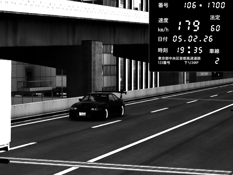 | 2026/02/05 19:33 | C1外回り 新富町 | 135 / 60 km/h | Nissan Skyline GTR R33 (S3 - Wangan) | CAPTURE |