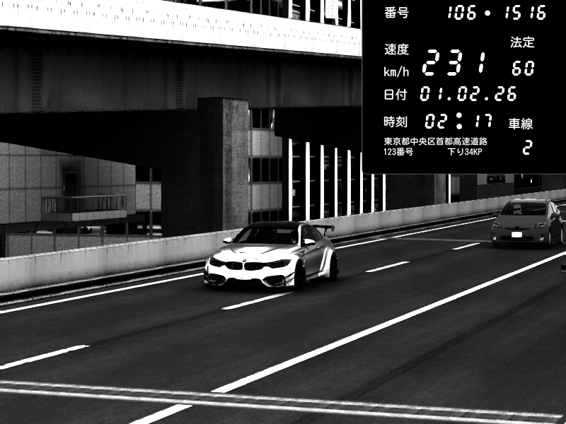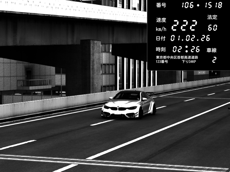 | 2026/02/01 02:08 | 4号下り 代々木 | 173 / 60 km/h | BMW M4 crash.Sp Varis Widebody | CAPTURE |