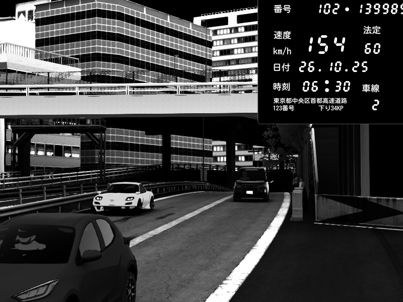 | 2025/10/26 06:30 | C1外回り 新富町 | 154 / 60 km/h | Mazda RX-7 FD3S RE Amemiya | CAPTURE |