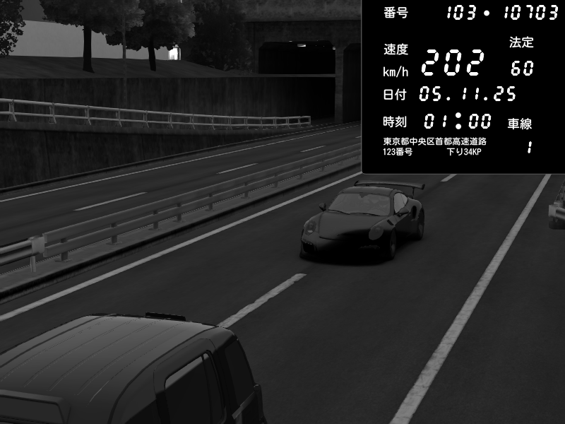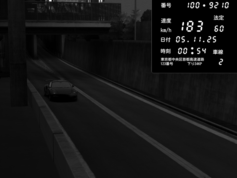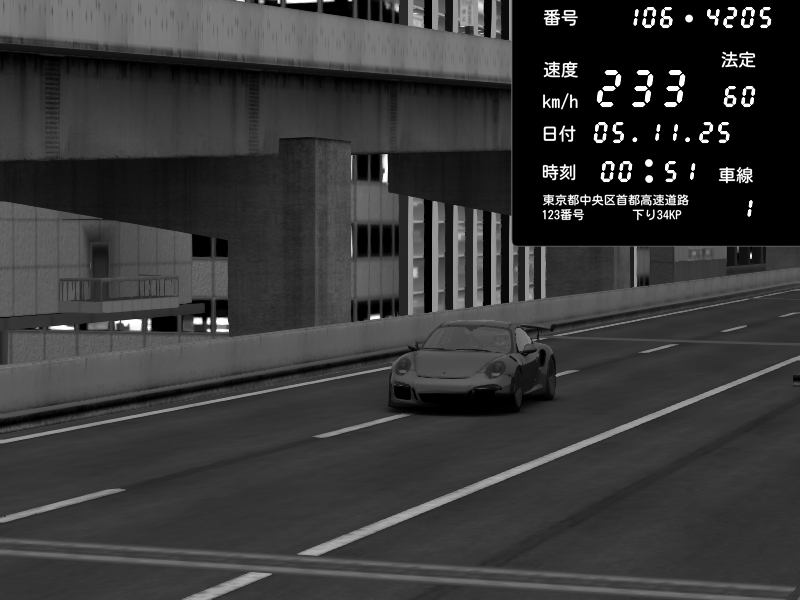 | 2025/11/05 00:49 | C1内回り 京橋 | 183 / 60 km/h | Porsche 911 GT3 RS | CAPTURE |