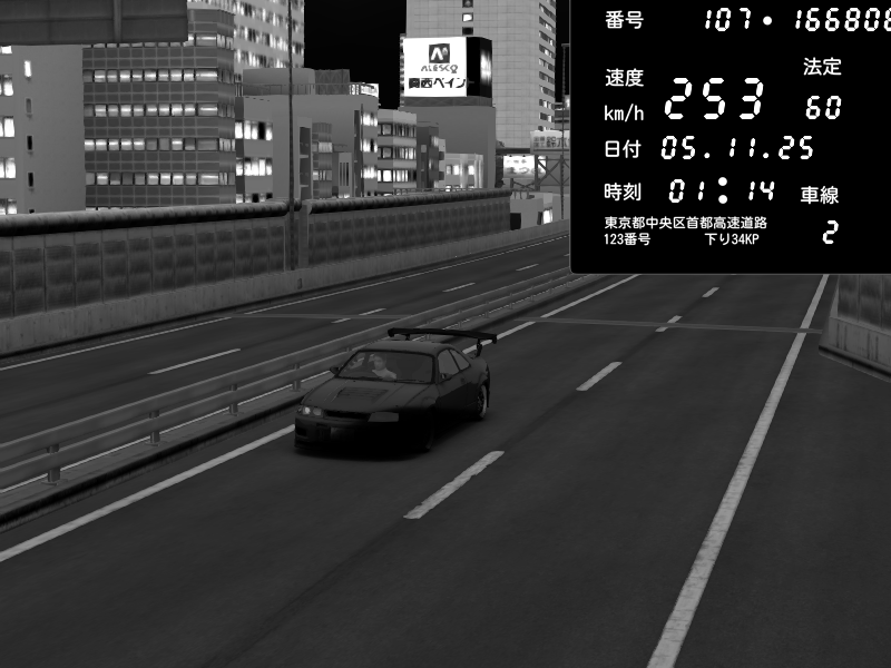 | 2025/11/05 01:12 | C1外回り 新富町 | 163 / 60 km/h | Nissan Skyline GTR R33 (S3 - Wangan) | CAPTURE |