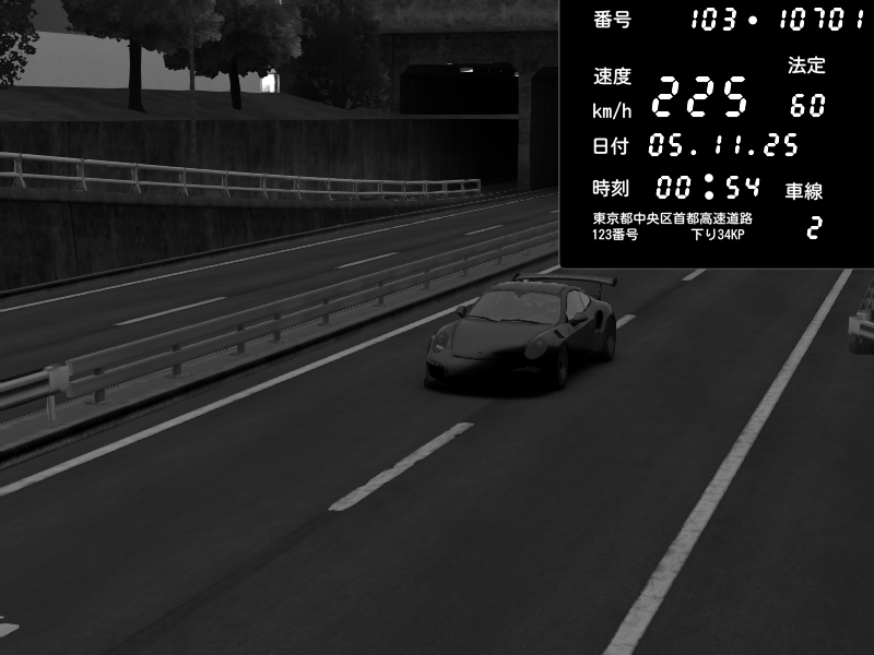 | 2025/11/05 00:54 | C1内回り 銀座 | 225 / 60 km/h | Porsche 911 GT3 RS | CAPTURE |