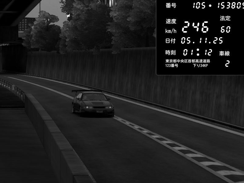 | 2025/11/05 01:12 | C1外回り 京橋 | 246 / 60 km/h | Nissan Skyline GTR R33 (S3 - Wangan) | CAPTURE |