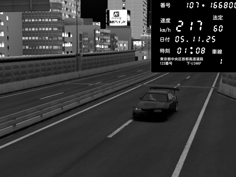 | 2025/11/05 01:08 | C1外回り 芝公園 | 217 / 60 km/h | Nissan Skyline GTR R33 (S3 - Wangan) | CAPTURE |