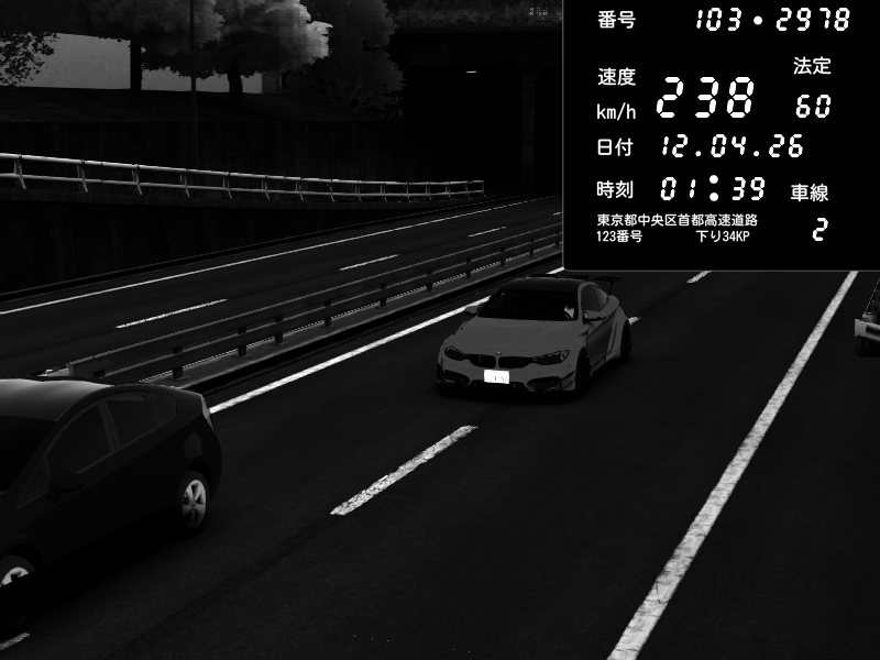 | 2026/04/12 01:39 | C1内回り 銀座 | 238 / 60 km/h | BMW M4 crash.Sp Varis Widebody | CAPTURE |