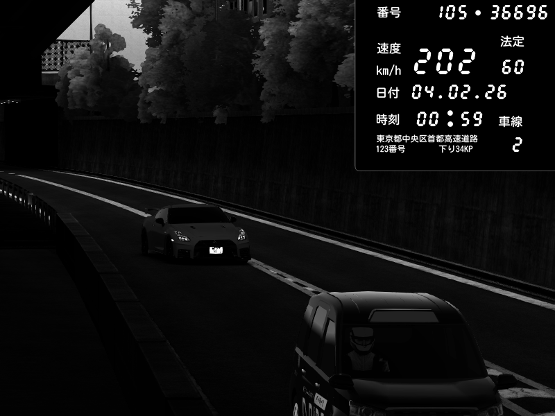 | 2026/02/04 00:49 | C1外回り 新富町 | 102 / 60 km/h | Nissan GT-R NISMO 2017 | CAPTURE |