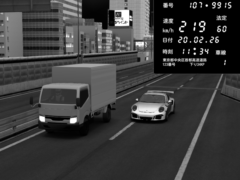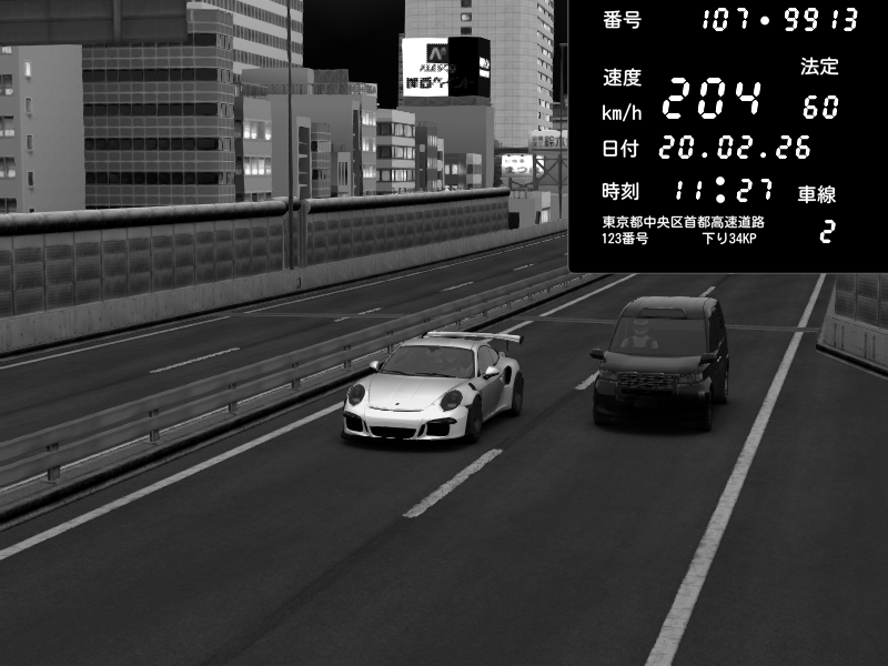 | 2026/02/20 11:32 | C1外回り 新富町 | 108 / 60 km/h | Porsche 911 GT3 RS | CAPTURE |