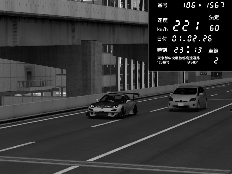| 2026/02/01 23:30 | C1外回り 新富町 | 163 / 60 km/h | Mazda RX-7 FD3S RE Amemiya | CAPTURE |