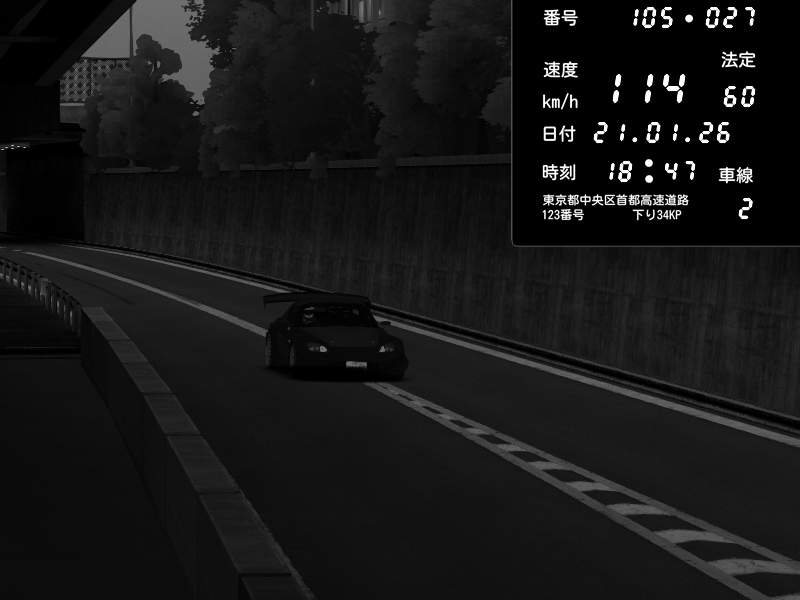 | 2026/01/21 18:47 | C1外回り 京橋 | 114 / 60 km/h | Honda S2000 Turbo GT1 Amuse (AP1) | CAPTURE |