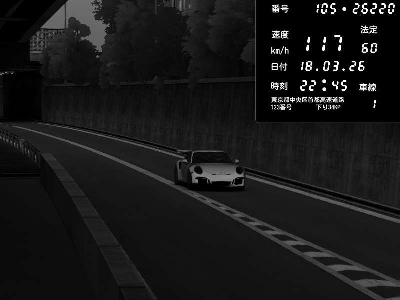 | 2026/03/18 22:45 | C1外回り 京橋 | 117 / 60 km/h | Porsche 911 GT3 RS | CAPTURE |