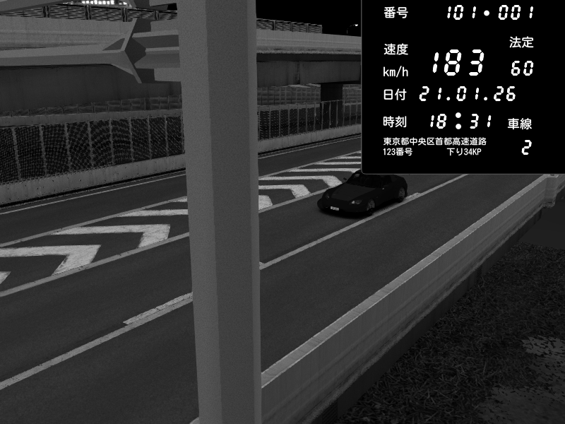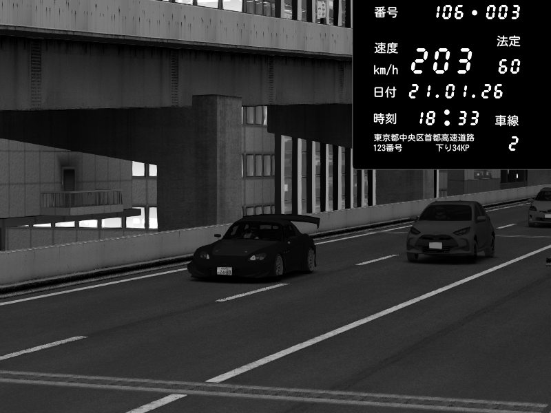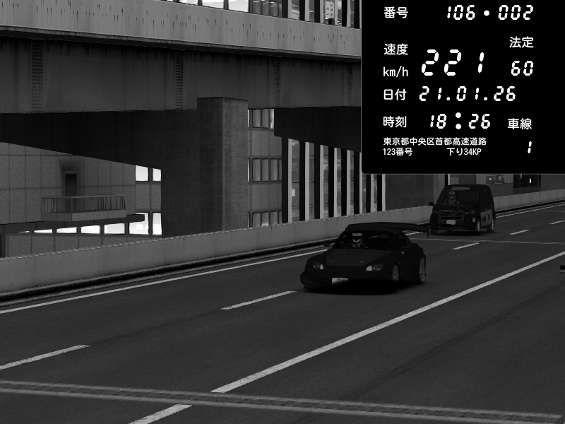 | 2026/01/21 18:31 | C1内回り 竹橋JCT | 183 / 60 km/h | Honda S2000 Turbo GT1 Amuse (AP1) | CAPTURE |