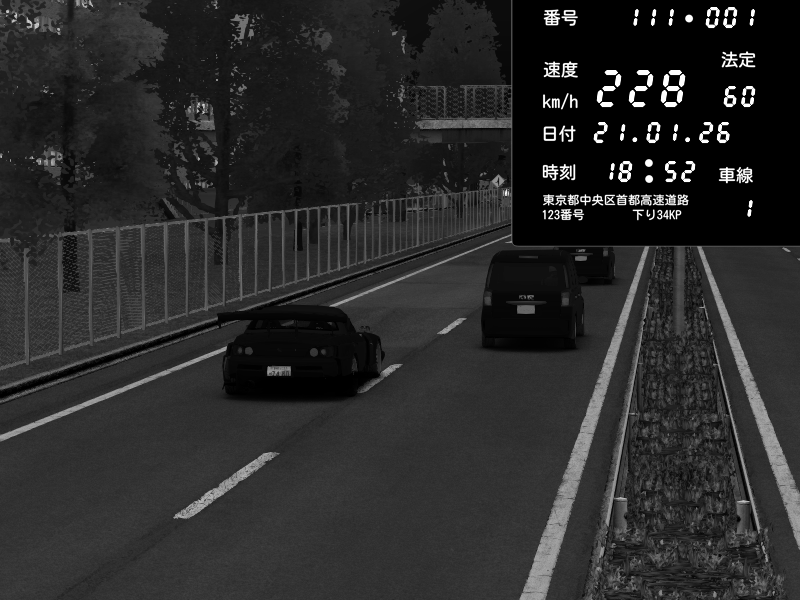 | 2026/01/21 18:33 | 9号下り 木場 | 203 / 60 km/h | Honda S2000 Turbo GT1 Amuse (AP1) | CAPTURE |