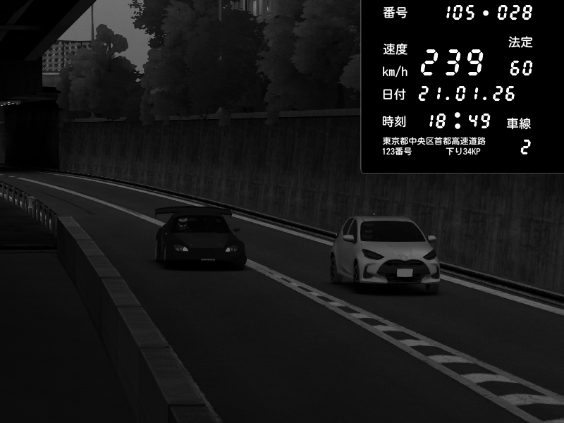 | 2026/01/21 18:49 | C1外回り 京橋 | 239 / 60 km/h | Honda S2000 Turbo GT1 Amuse (AP1) | CAPTURE |