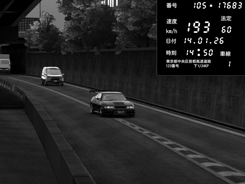 | 2026/01/14 14:37 | C1ε€εγ θε ¬ε | 204 / 60 km/h | Nissan Skyline GTR R33 (S3 - Wangan) | CAPTURE |