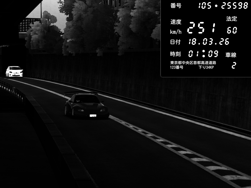 | 2026/03/18 01:09 | C1外回り 京橋 | 251 / 60 km/h | Honda S2000 Turbo GT1 Amuse (AP1) | CAPTURE |