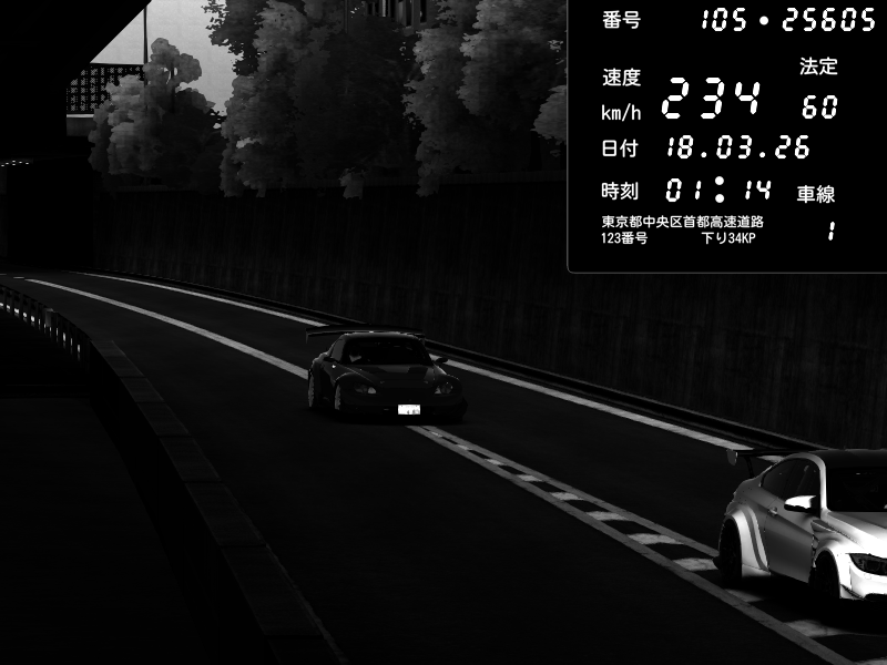 | 2026/03/18 01:14 | C1外回り 京橋 | 234 / 60 km/h | Honda S2000 Turbo GT1 Amuse (AP1) | CAPTURE |