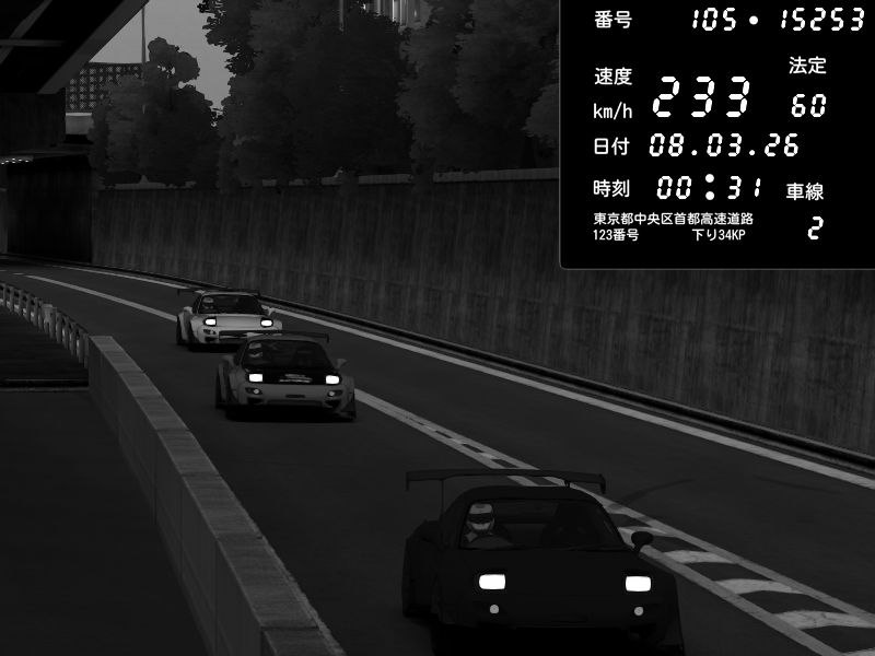| 2026/03/08 00:31 | C1外回り 京橋 | 233 / 60 km/h | Mazda RX-7 FD3S FEED Afflux GT3 | CAPTURE |