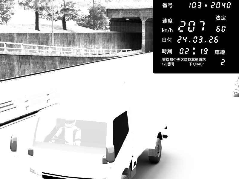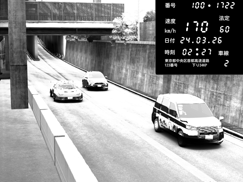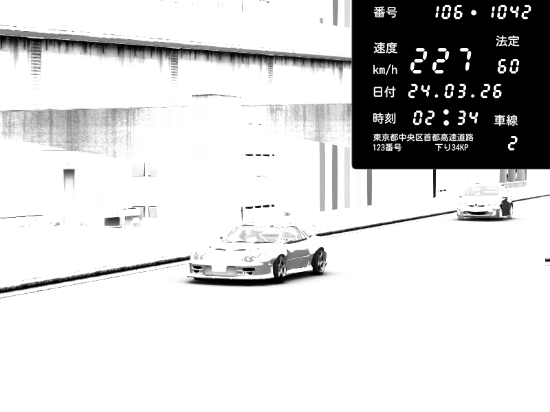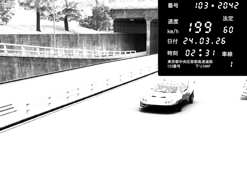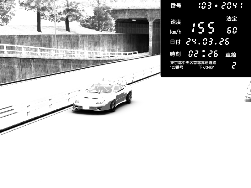 | 2026/03/24 02:32 | C1内回り 京橋 | 186 / 60 km/h | Pit Road M - Mitsubishi GTO Twin Turbo | CAPTURE |