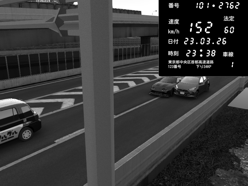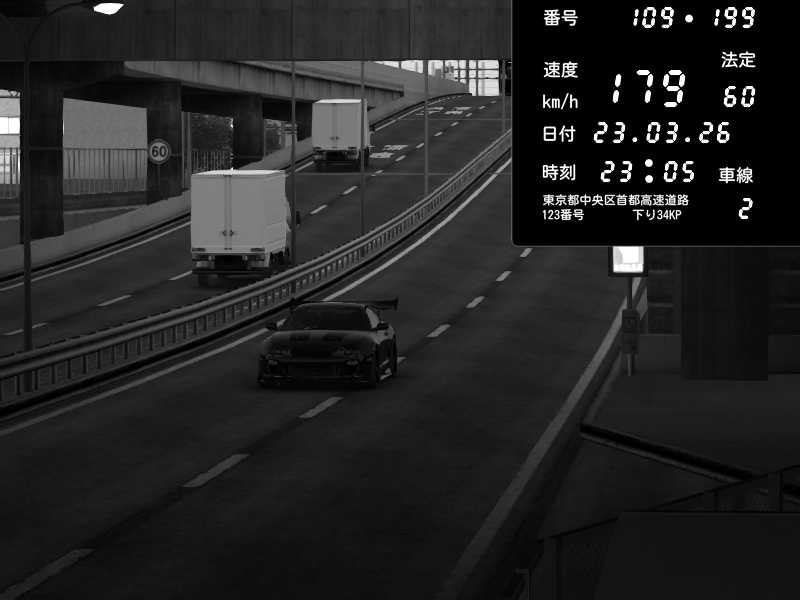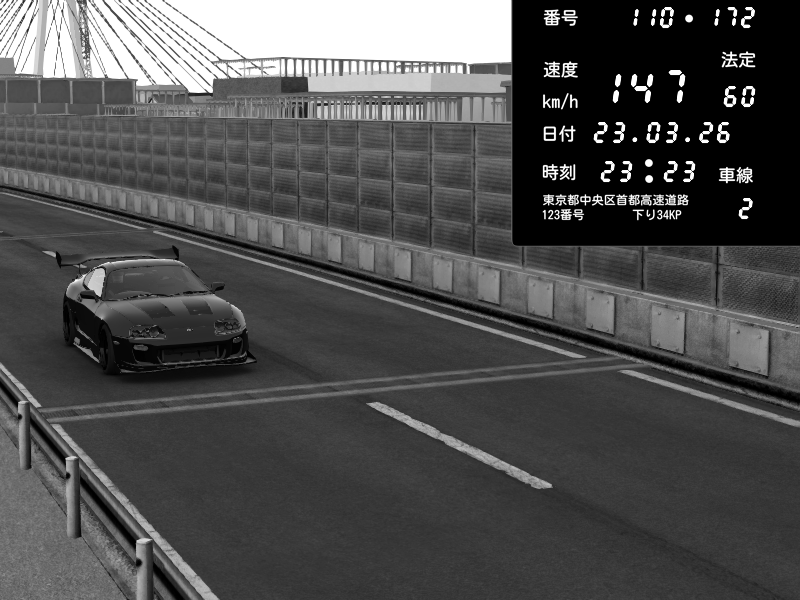 | 2026/03/23 23:38 | C1内回り 竹橋JCT | 152 / 60 km/h | Toyota Supra MKIV Time Attack | CAPTURE |