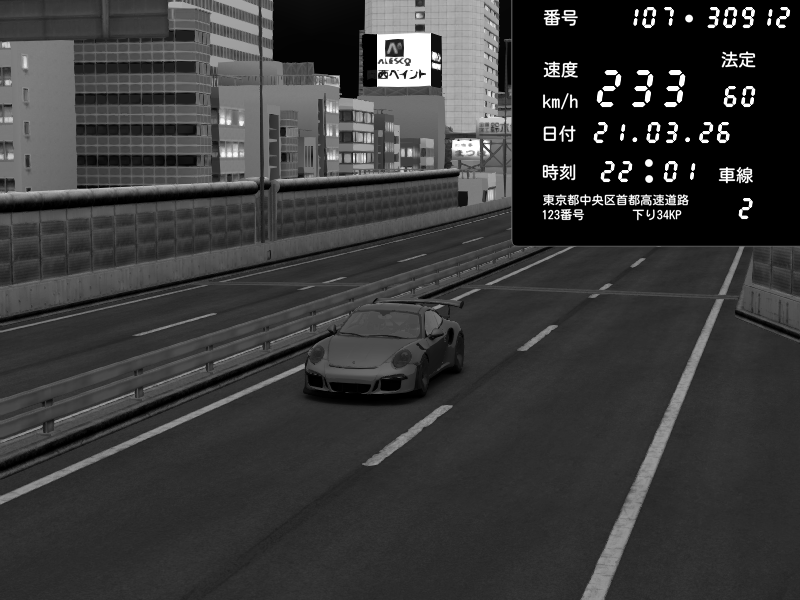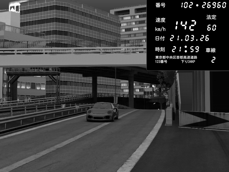 | 2026/03/21 21:46 | C1外回り 芝公園 | 230 / 60 km/h | Porsche 911 GT3 RS | CAPTURE |