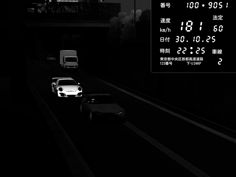 | 2025/10/30 22:25 | C1内回り 京橋 | 181 / 60 km/h | Porsche 911 GT3 RS | CAPTURE |