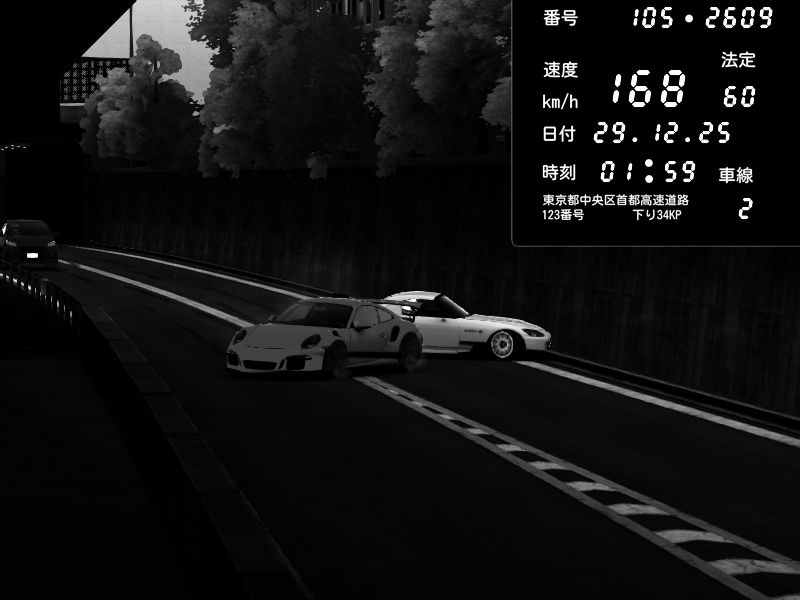 | 2025/12/29 01:56 | C1内回り 竹橋JCT | 120 / 60 km/h | Porsche 911 GT3 RS | CAPTURE |
