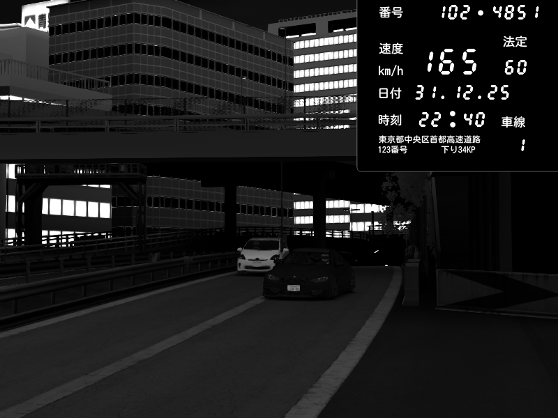 | 2025/12/31 22:40 | C1外回り 新富町 | 165 / 60 km/h | BMW M4 crash.Sp Varis Widebody | CAPTURE |