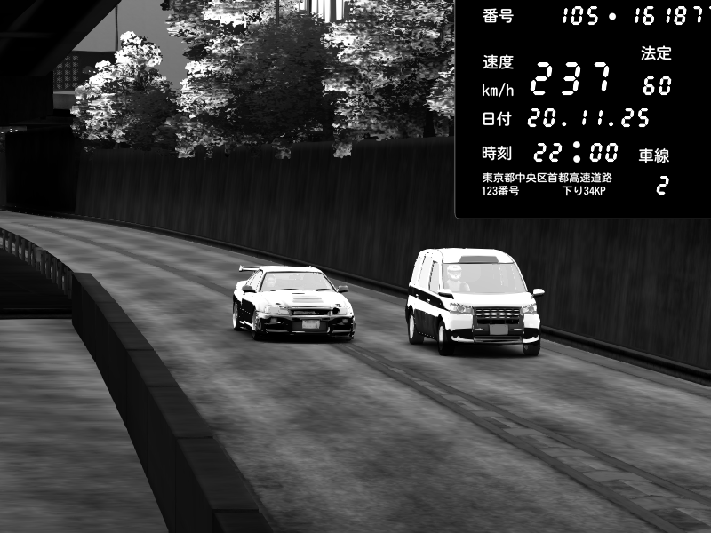 | 2025/11/20 21:29 | 4号下り 代々木 | 132 / 60 km/h | Nissan Skyline GT-R R34 Nismo Omori Factory S1 | CAPTURE |