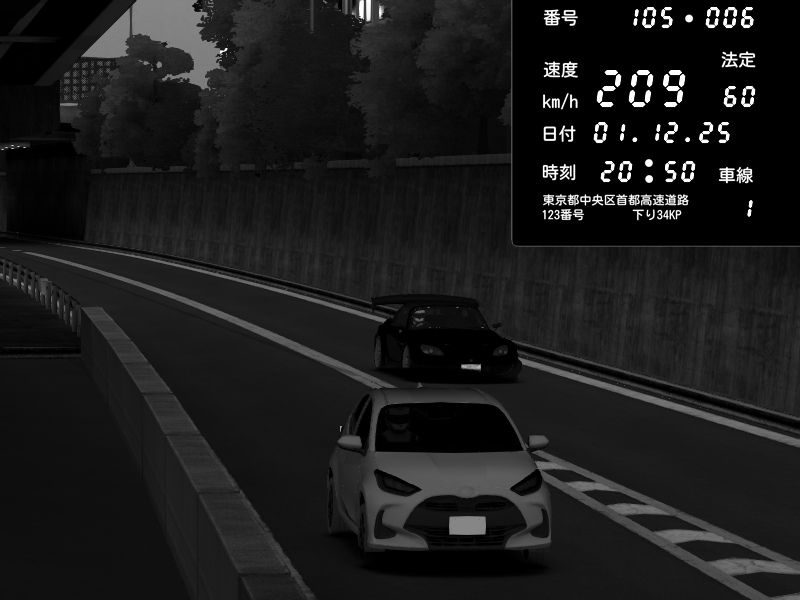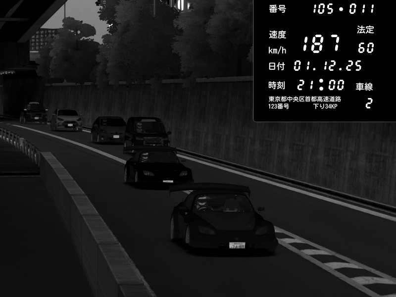 | 2025/12/01 21:00 | C1外回り 京橋 | 187 / 60 km/h | Honda S2000 Turbo GT1 Amuse (AP1) | CAPTURE |