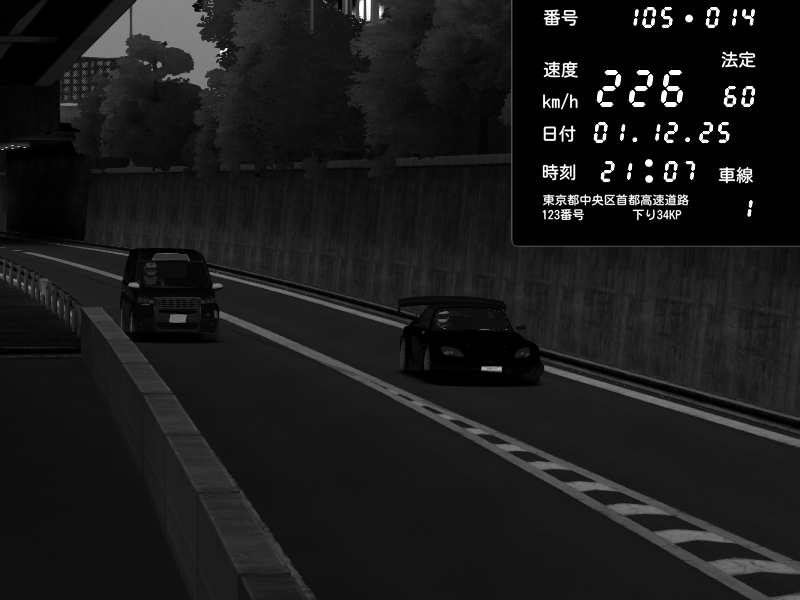| 2025/12/01 21:07 | C1外回り 京橋 | 226 / 60 km/h | Honda S2000 Turbo GT1 Amuse (AP1) | CAPTURE |