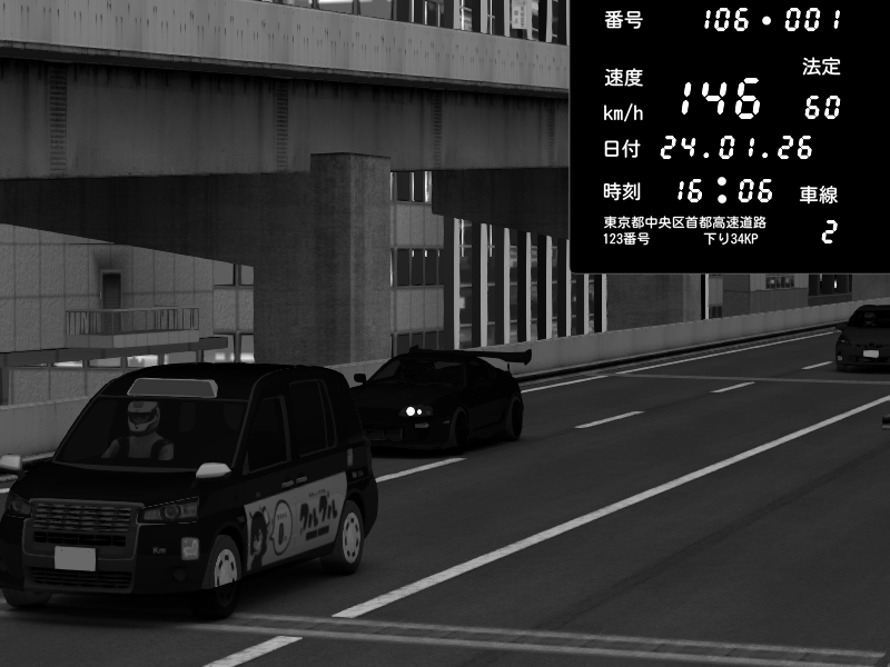 | 2026/01/24 16:06 | 9号下り 木場 | 146 / 60 km/h | Toyota Supra MKIV Time Attack | CAPTURE |