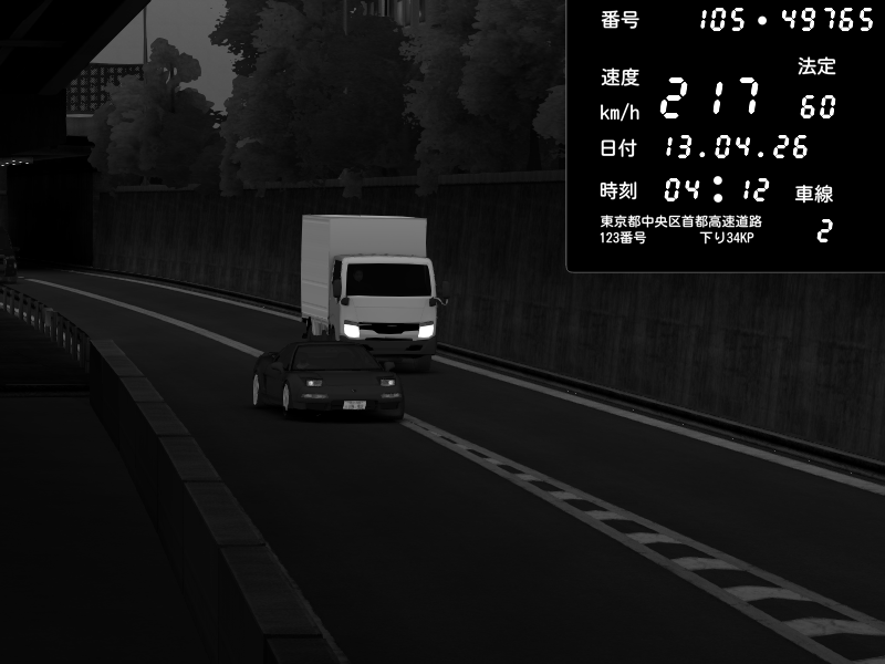 | 2026/04/13 04:12 | C1外回り 京橋 | 217 / 60 km/h | Honda NSX [NA1] PVLSX | CAPTURE |