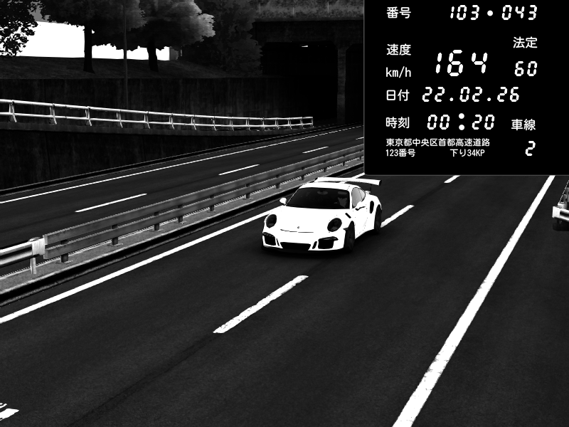 | 2026/02/22 00:20 | C1内回り 銀座 | 164 / 60 km/h | Porsche 911 GT3 RS | CAPTURE |