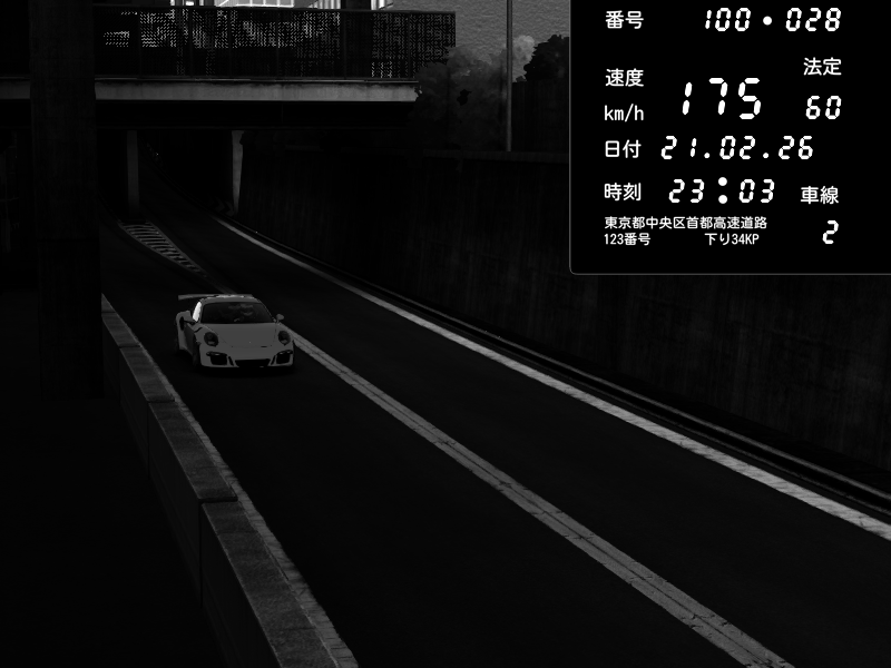 | 2026/02/21 23:03 | C1内回り 京橋 | 175 / 60 km/h | Porsche 911 GT3 RS | CAPTURE |