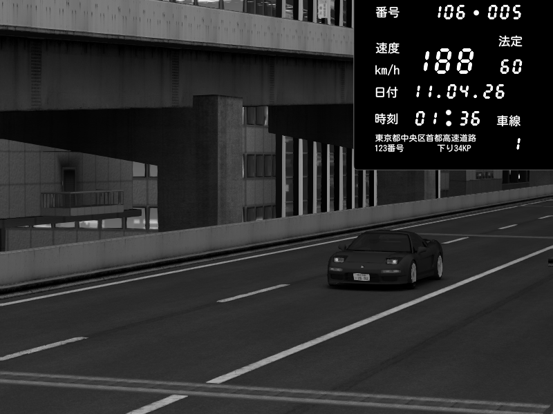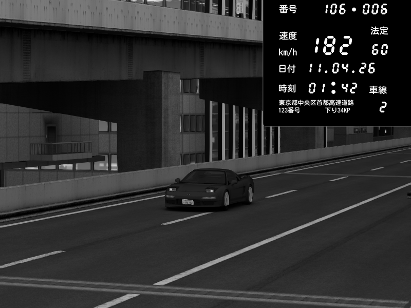 | 2026/04/11 01:33 | C1内回り 銀座 | 170 / 60 km/h | Honda NSX [NA1] PVLSX | CAPTURE |