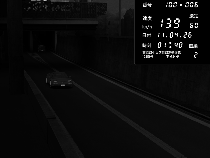 | 2026/04/11 01:39 | C1内回り 銀座 | 156 / 60 km/h | Honda NSX [NA1] PVLSX | CAPTURE |