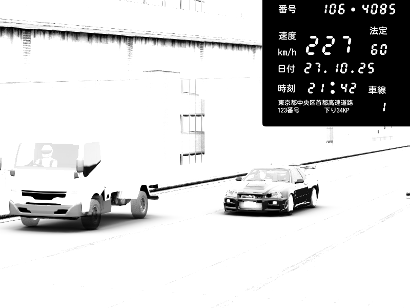 | 2025/10/27 21:49 | C1外回り 京橋 | 276 / 60 km/h | Nissan Skyline GT-R R34 Nismo Omori Factory S1 | CAPTURE |