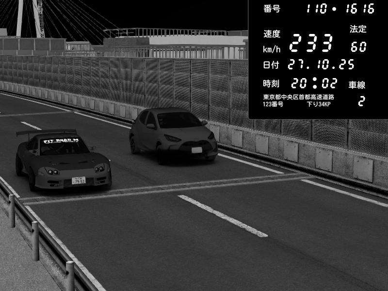 | 2025/10/27 20:02 | K1上り 羽田 | 233 / 60 km/h | Pit Road M - Mitsubishi GTO Twin Turbo | CAPTURE |