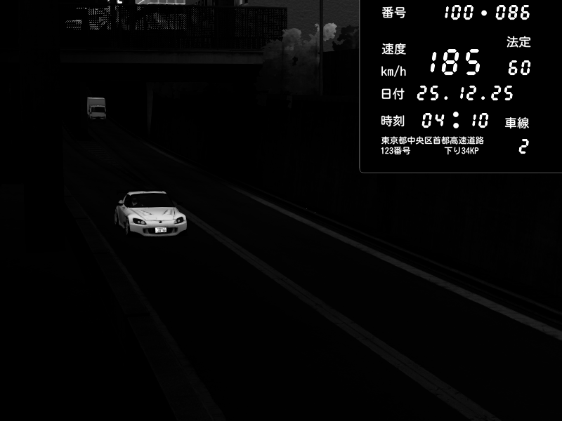 | 2025/12/25 04:10 | C1内回り 京橋 | 185 / 60 km/h | Honda S2000 (AP2 - Legendary) | CAPTURE |