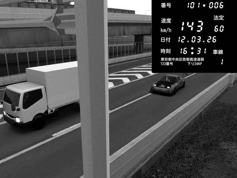 | 2026/03/12 16:31 | C1内回り 竹橋JCT | 143 / 60 km/h | Mazda RX-7 FD3S FEED Afflux GT3 | CAPTURE |