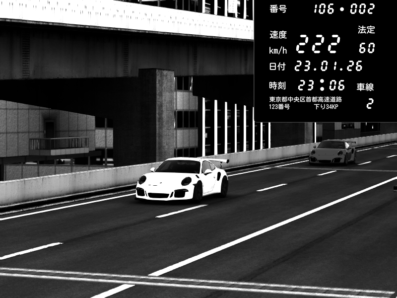 | 2026/01/23 23:06 | 9号下り 木場 | 222 / 60 km/h | Porsche 911 GT3 RS | CAPTURE |
