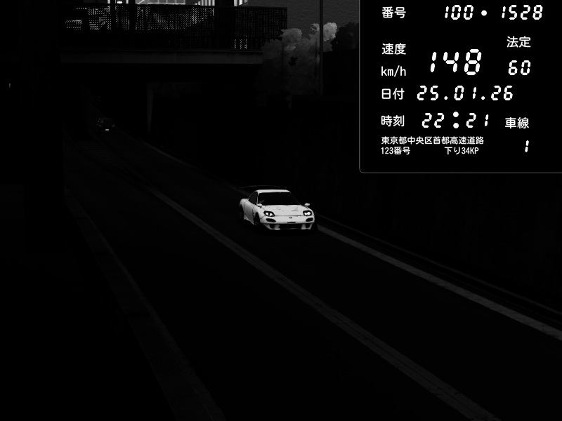 | 2026/01/25 22:21 | C1内回り 銀座 | 170 / 60 km/h | Mazda RX-7 FD3S RE Amemiya | CAPTURE |