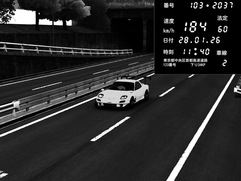 | 2026/01/28 11:40 | C1内回り 銀座 | 184 / 60 km/h | Mazda RX-7 FD3S RE Amemiya | CAPTURE |