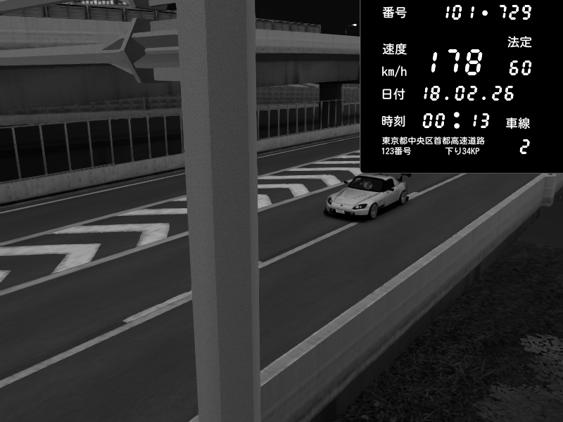 | 2026/02/18 00:13 | C1内回り 竹橋JCT | 178 / 60 km/h | Honda S2000 (AP2 - Legendary) | CAPTURE |