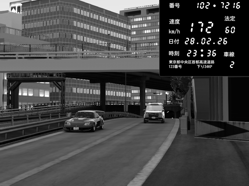| 2026/02/28 23:36 | C1外回り 新富町 | 172 / 60 km/h | Honda S2000 Turbo GT1 Amuse (AP1) | CAPTURE |
